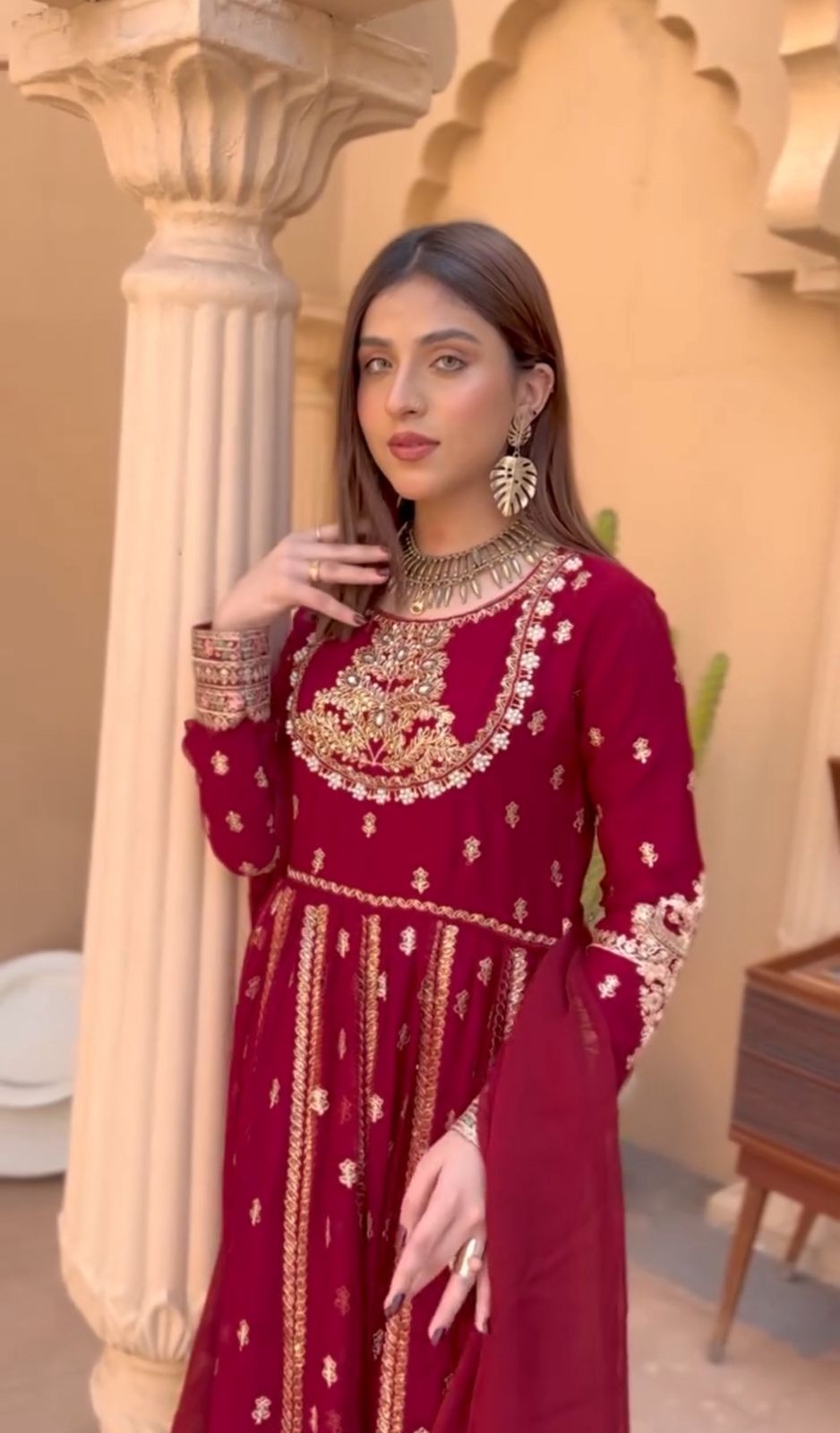 Gown Fabric : Pure Blooming Georgette With Heavy Embroidery 5 mm Sequence Work With Full-Sleeve With Latkan Dori