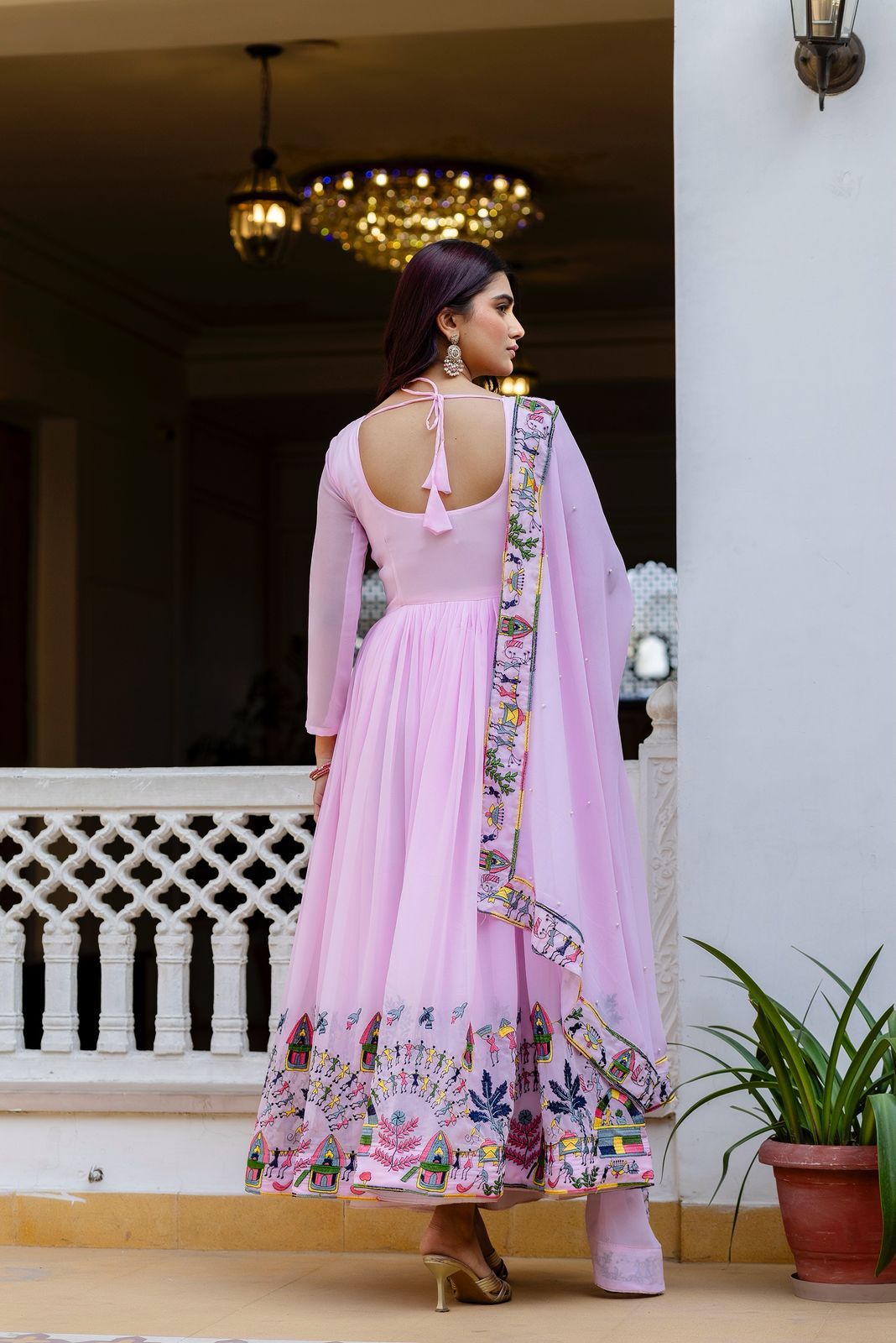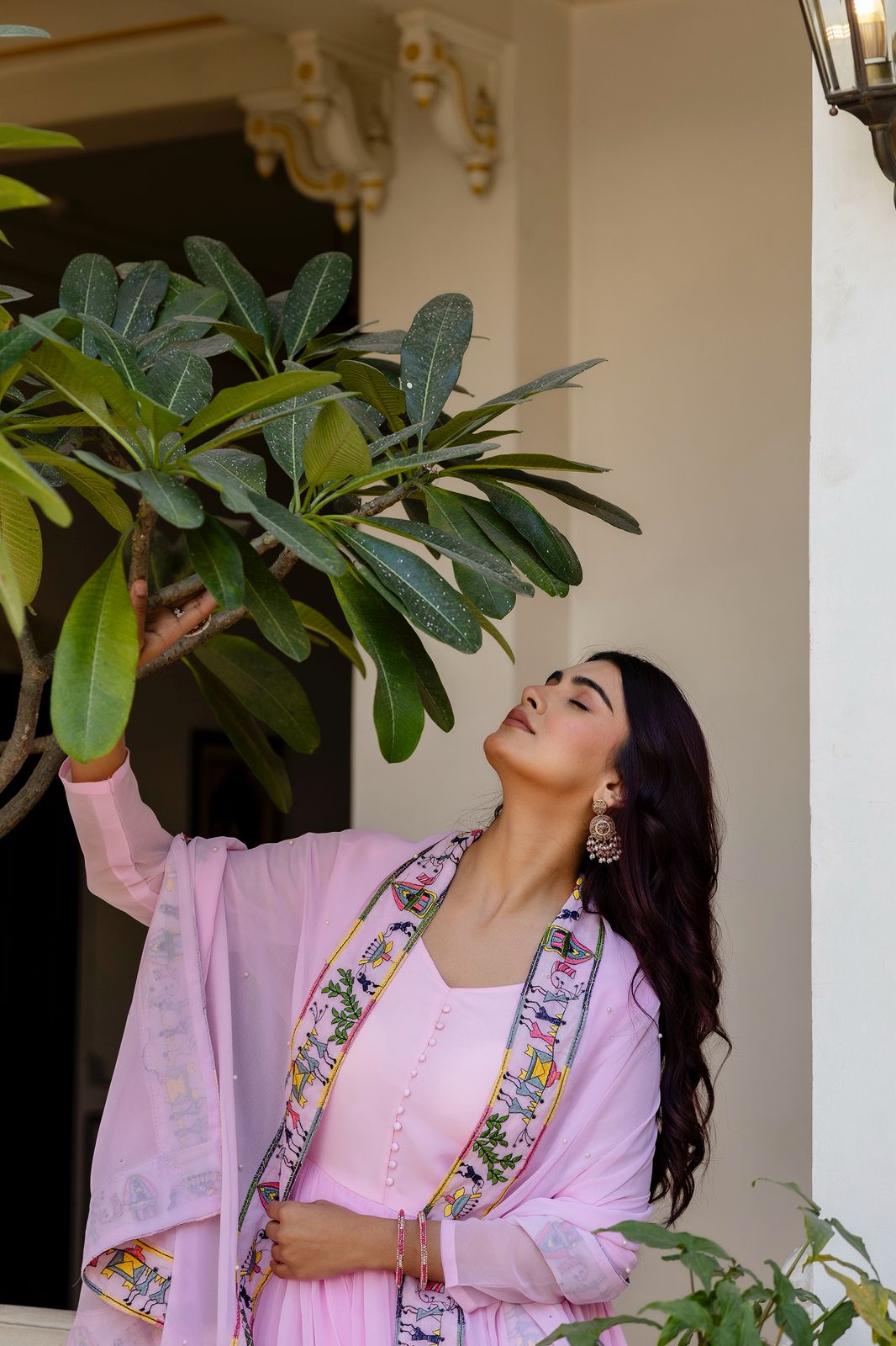 Gown ke saath koi extra tassel wagaira nahi, simple lines. Good for easy maintenance. Fabric crease thoda jaldi aata, par steam se chala jata. Length 5’5 height ke liye ankle se neeche.