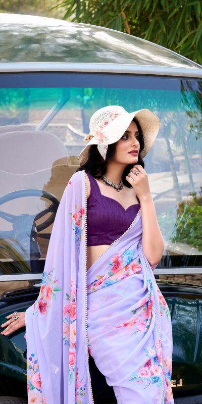 Amazing Light Purple Color Weightless Marble Floral Printed Saree