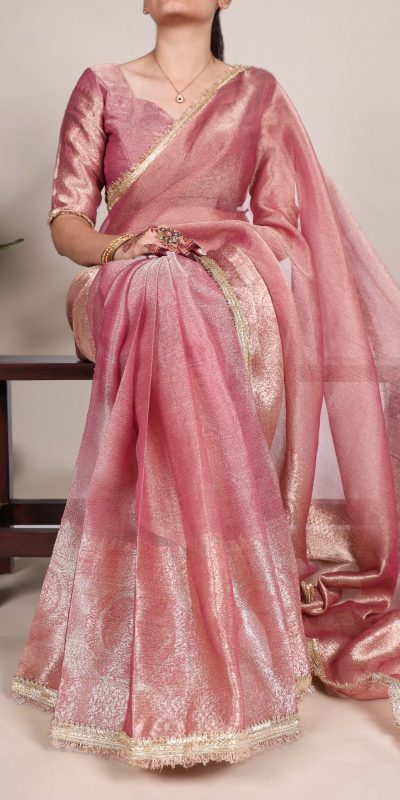 166 reviews for Pink Tissue Shimmer Zari Weaving Work Saree