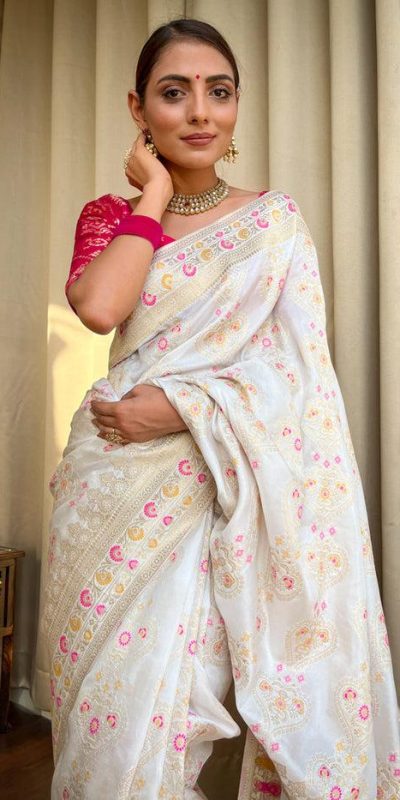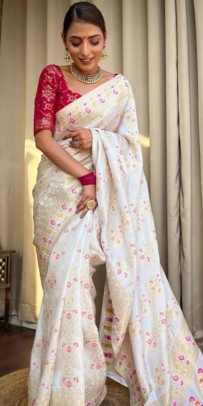 121 reviews for White Soft Litchi Silk Kubera Pattu On All Over Saree