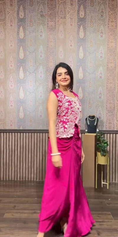 117 reviews for Pink Chinon Sequence Embroidery Work Dhoti Suit