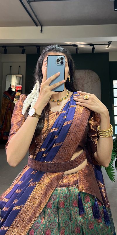 Navy Blue Silk Jacquard Zari Weaving Work Lehenga Choli