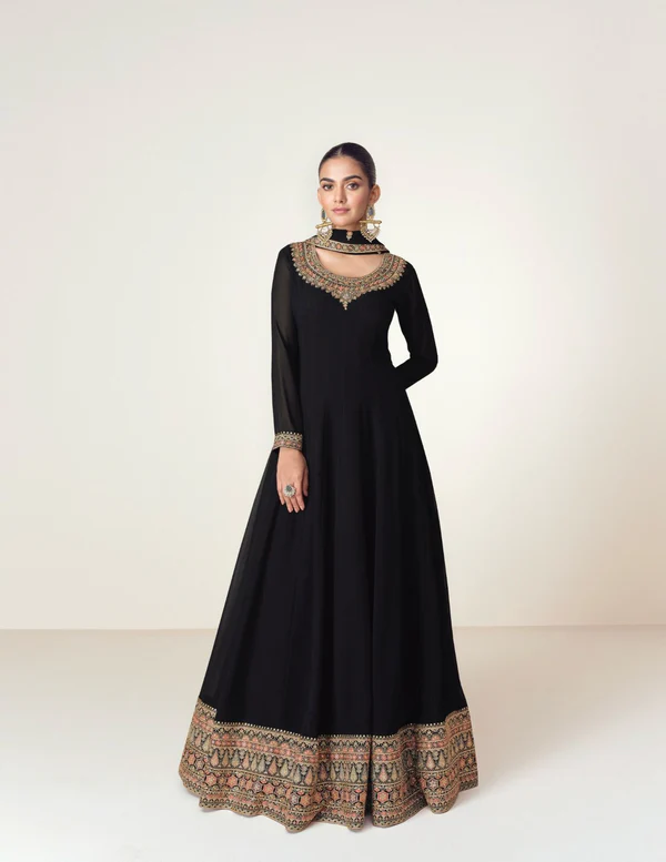 Fabric Details : Top : Blooming Georgette Embroidery Work (Stitched) Sleeves : Blooming Georgette Embroidery Work Inner : Santoon Attached with top Size Detail: Top Length : 55 Inches Dupatta : Blooming Embroidery Work Four Side Lace |