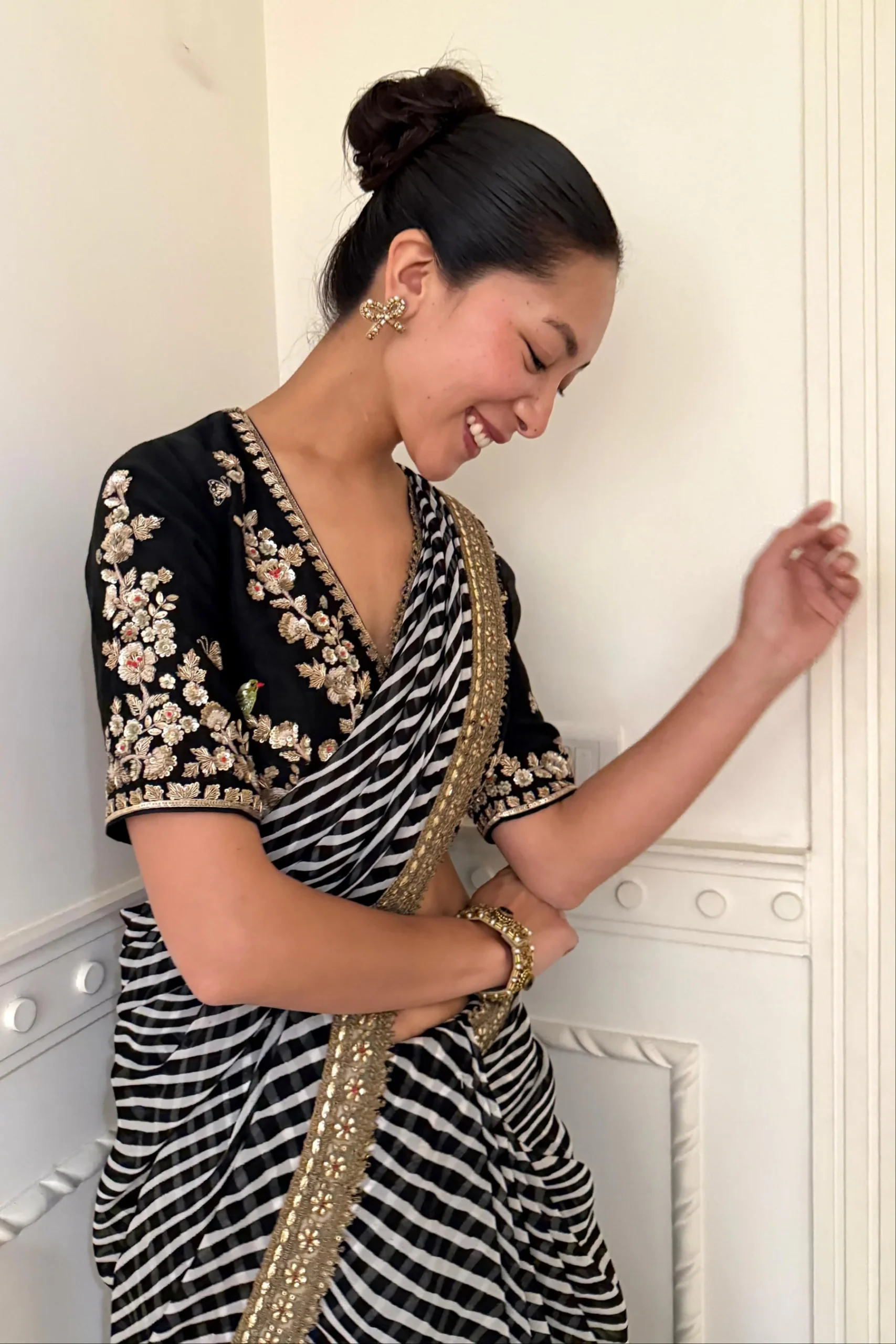 1. This georgette shimmer Indian saree for cocktail party was a hit; right amount of sparkle, not overdone, and super easy pleats.