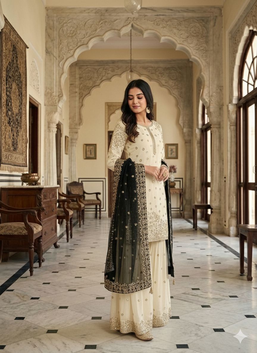 sharara Fabrics :Pure Fendy Silk With Heavy Embroidery Sequence Work With Elastic