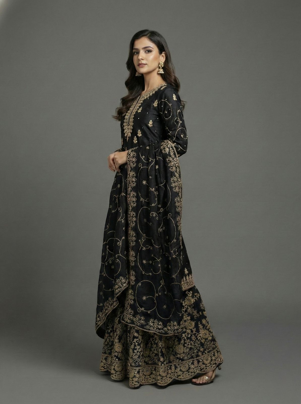 Black Organza Silk Embroidery Lace Work Salwar Suit