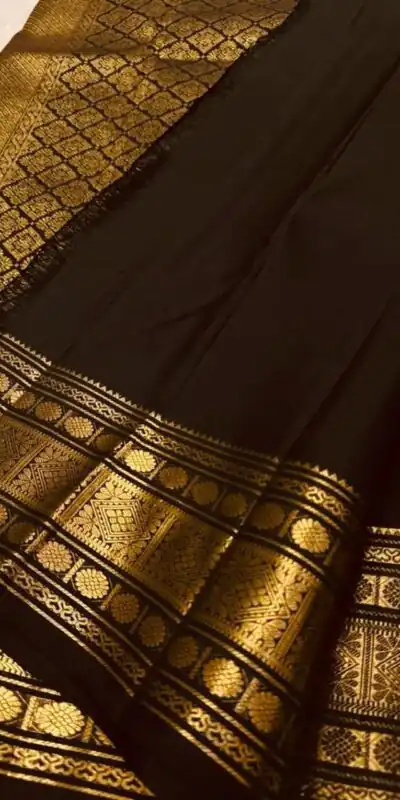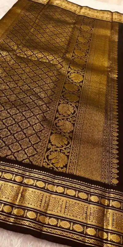 Black Soft Lichi Silk Lace Zari Work Saree