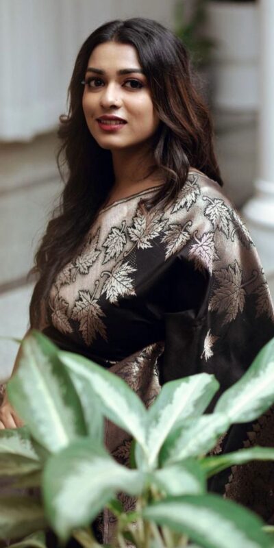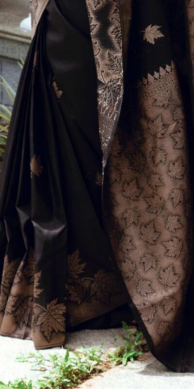 Black Soft Lichi Silk Rich Pallu Work Border Saree