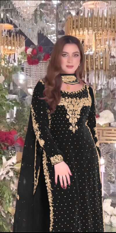 Top Fabric :Pure Heavy Viscose Velvet With Heavy Embroidery Sequence Work neck moti work With Full Sleeves