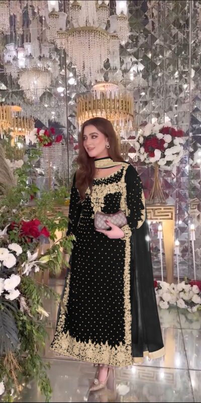 Black Viscose Velvet Lace Embroidery Work Salwar Suit