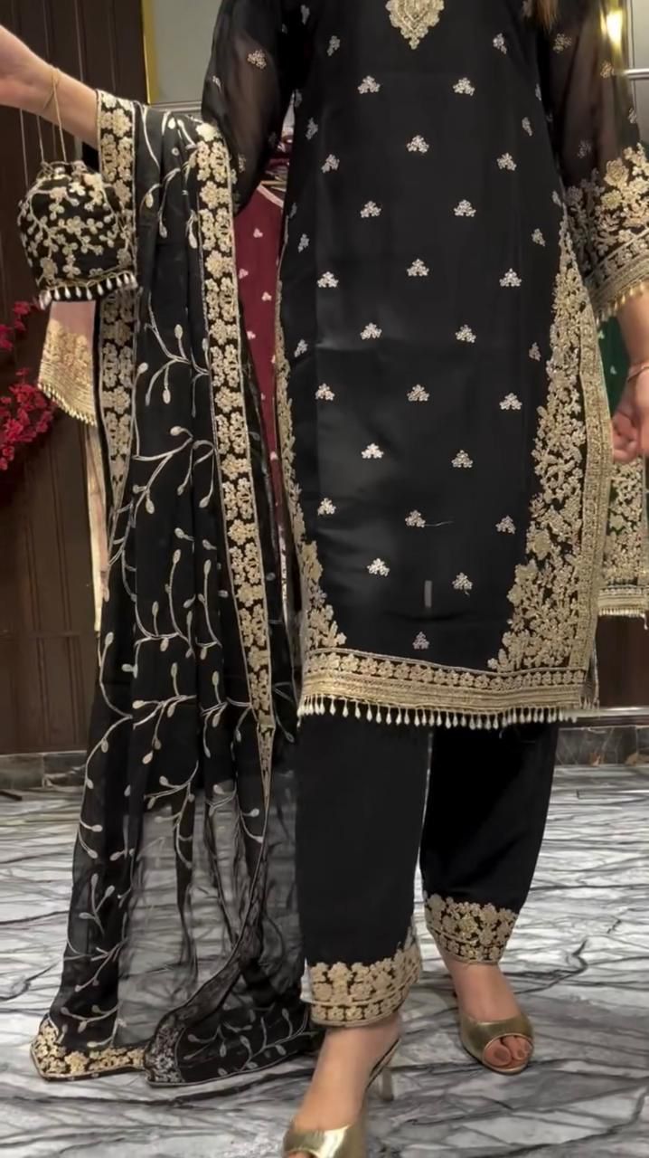 Black Zimmy Choo Embroidery Work Salwar Suit