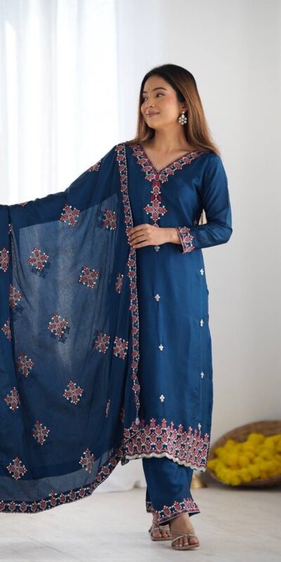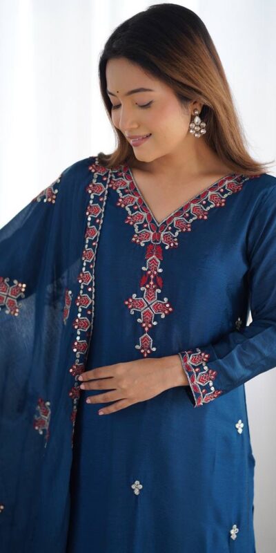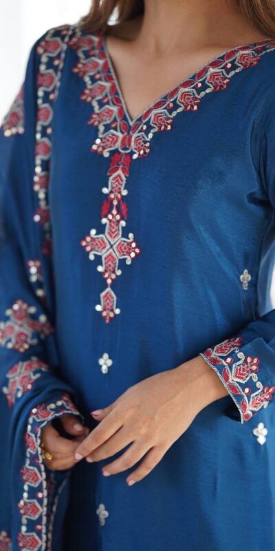 Blue Chinnon Silk Lace Embroidery Work Salwar Suit