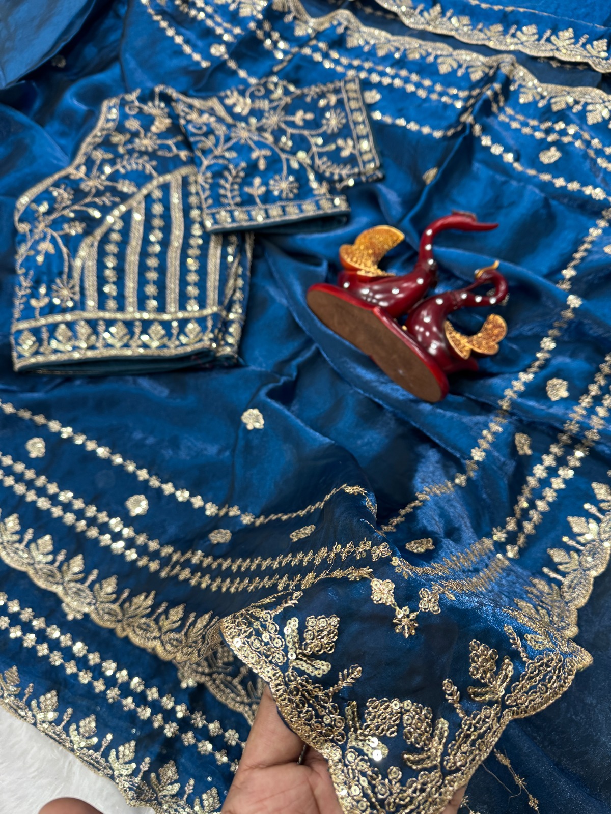 Saree Fab. :* Soft Space Silk Work : Sequence And Zari Embroidery Work Blouse* Space Silk With Sequins Embroidery Work ( Un stitch Blouse)