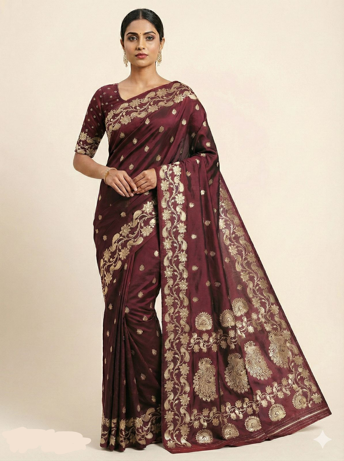 all-over self weaving with zari motifs. with a contrasted rich pallu and an unique border adorned with heavy zari weaving,