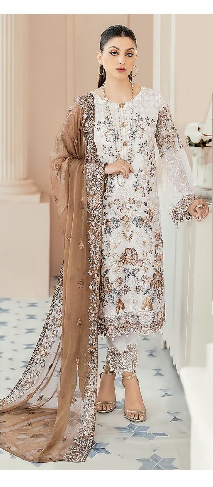 Fabric Details :- Top :-Heavy Georgette With Embroidery work -Zarkan Sleeves :-Heavy Georgette With Embroidery work Inner :-Dull SantoonBottom :-Dull Santoon Dupatta :-Heavy Georgette With Embroidery work Length :- Max up to 41 |