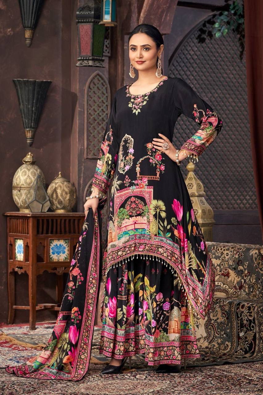 Classic Black Georgette Mirror Work Salwar Suit