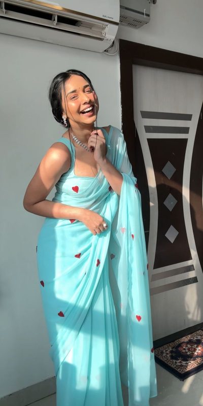 3. “The georgette saree’s flowy silhouette is mesmerizing. It adds a touch of glamour without compromising on comfort.”