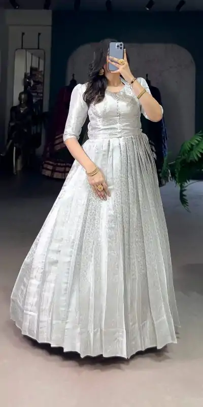 | Fabrics | Gown Fabric : Kanjivaram Gown Work : Zari Weaving Work With Lace Touch Up Gown Chest Size : Free Size Semi Stitched(Inside 2 inch extra margin available so customer can adjust up to 38" to 42" for your body comfort) Gown Waist Size : 38 Gown Shoulder :15 Gown Length : 55 Gown Flair : 3.80 Meter Gown Lining : Micro Cotton Koti Fabric : Kanjivaram Koti Work : Zari Weaving Work With Lace Touch Up Koti Chest Size : Free Size (Inside 2 inch extra margin available so customer can adjust up to 38" to 42" for your body comfort) Koti Length : 15 Koti Sleeve Length : 14 |