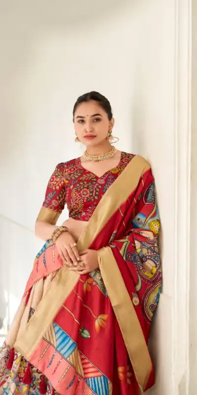 Lehenga Work : Kalamkari Print With Weaving Border