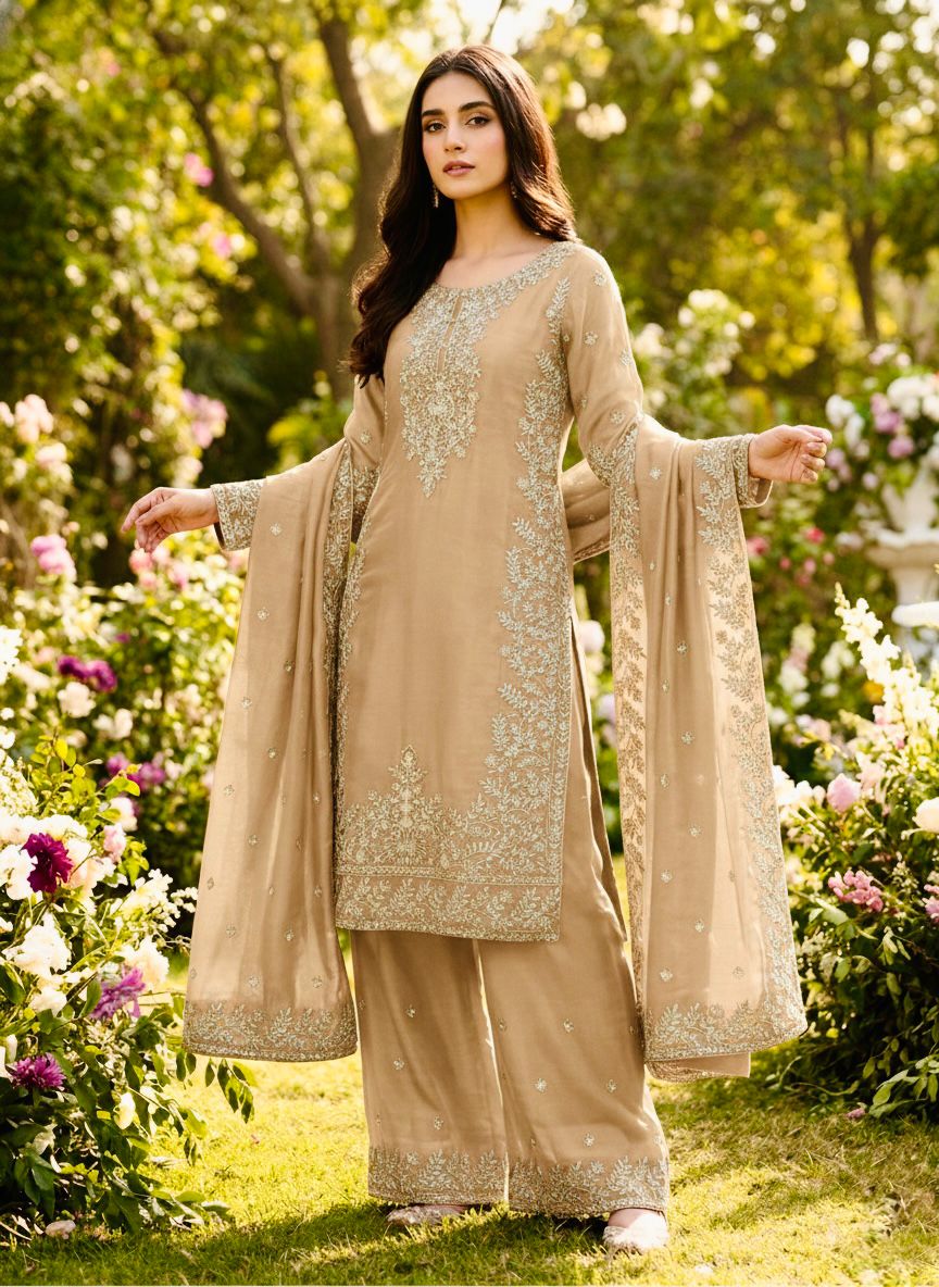 Cream Organza Silk With Sequence Work Salwar Suit