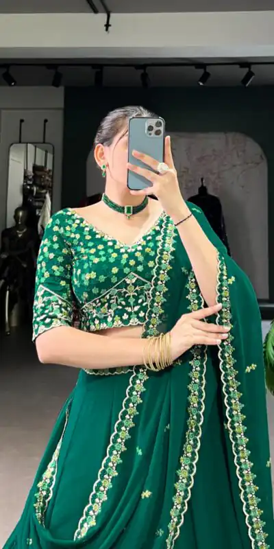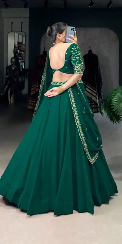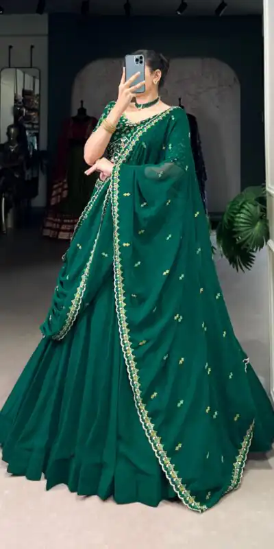Dark Green Georgette Embroidery Work Lehenga Choli