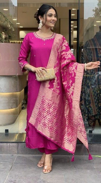 | Fabrics | Fabric :- Heavy Roman Silk Work :- Heavy Coding Work Bottom fabric :- Heavy Roman Silk dupatta Fabrice :- Banarasi Jacquard Dupatta Wide Beautiful Zari Dress :- Fully Stitched Size :-Free Size Semi Stitched |