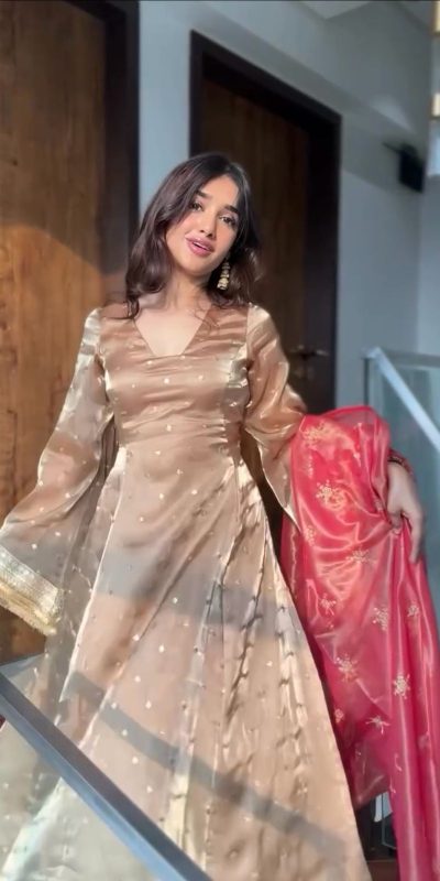Fabrics Top :- Jimmy Choo Work: Heavy Sequence Embroidery Work -embroidered Border On Sleeves  And Zalar Lace Work Style : naira Flair Cut : 3 Mtr Flair Back Side Fancy Work Inner : Micro Height : 52”inch Top Size : M-38 ,l-40 ,xl-42 , xxl 44 Sami Stitched Dupatta :- Heavy Fox Georgette With Embroidery Sequence Work pent Fabrics: Jimmy Choo pent Size : Free Size Full stitched height :40”inch Dupatta fabric : Silver Gold With Sequence Embroidery Work
