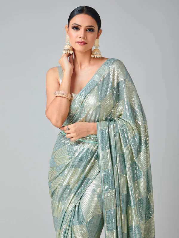 Dual Sequins Of 3mm & 5mm Sequins Work In Saree