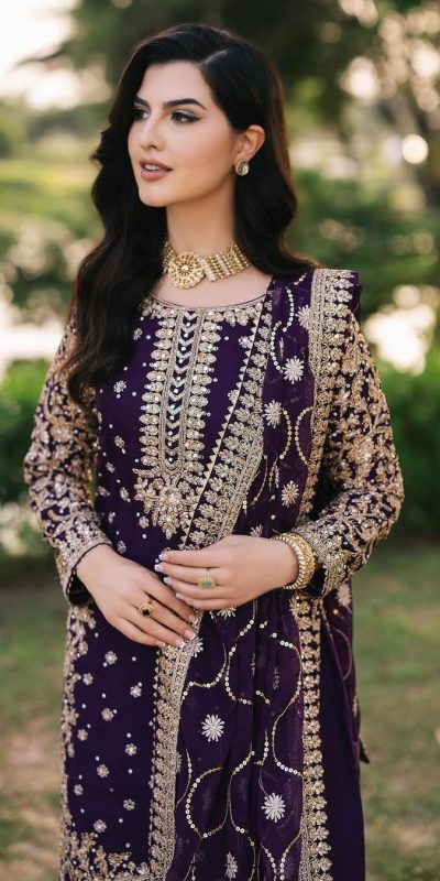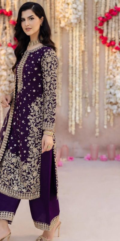 Violet Faux Georgette With Embroidery Sequence With Beads Work Salwar Suit