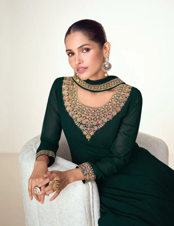 Green Blooming Georgette Embroidery Work Salwar Suit