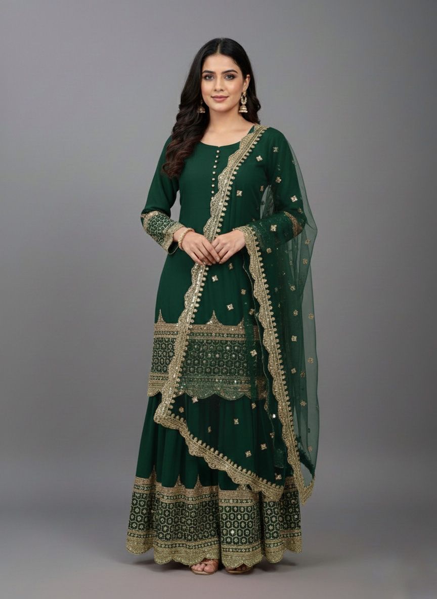 ZF 250 Green Color Faux Georgette Embroidery Sequence Work Sharara Suit Wedding, Party, Festive, Events Etc. Expected Delivery 4-6 Working Days @2099/- | Jump Suits, Salwar suit, Casual Suits, Creative suits, Designer Suits, Palazzo Suits, Party Wear Suits, Patiala Suits, Straight Suits