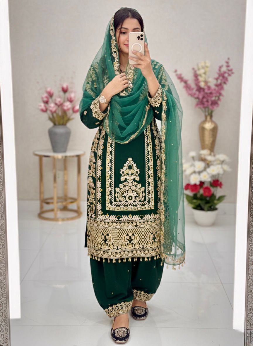 Green Faux Georgette With Embroidery Work Salwar Suit