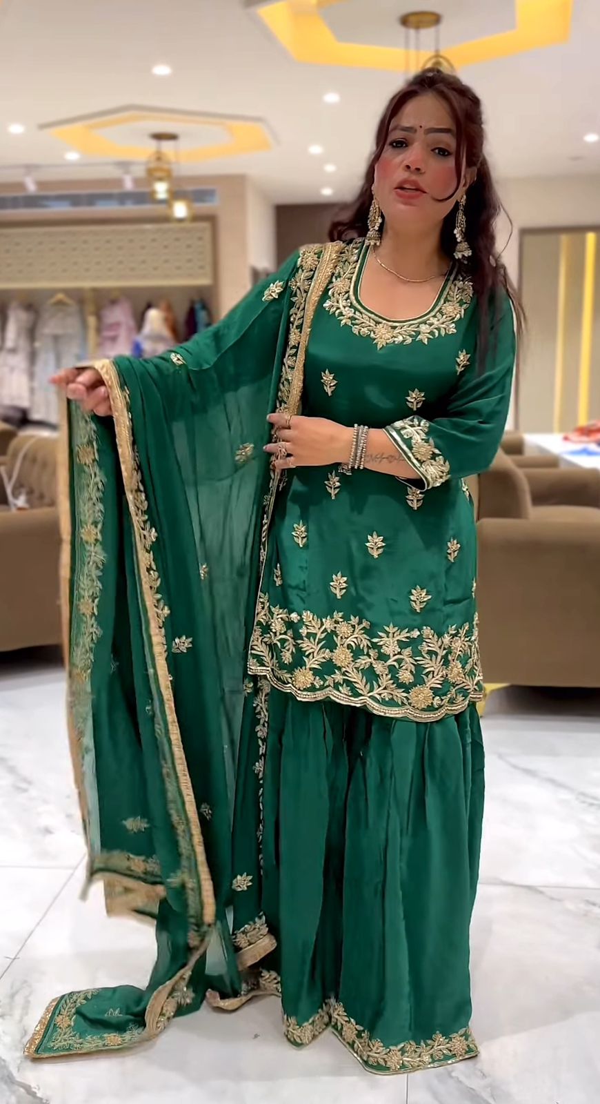 Sharara Palazzo : Natural Crep With 5mm Sequence Embroidery Work.