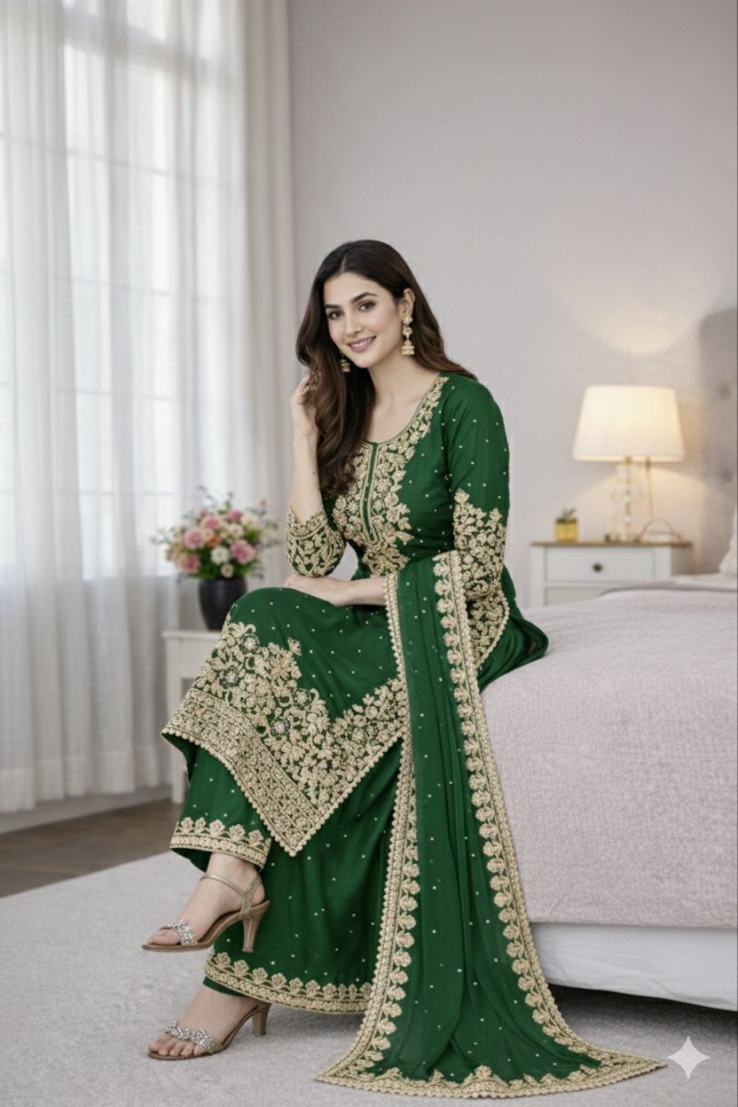 Green Organza Silk Embroidery Work Salwar Suit