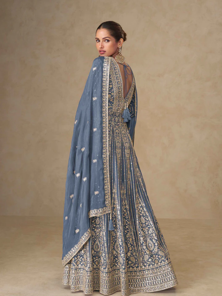 Sky Blue Zimmy Silk Sequence Work Salwar Suit