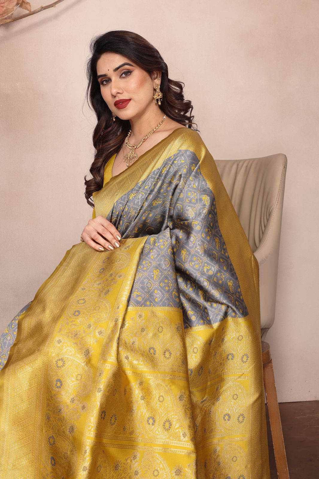 Grey Lichi Silk Jacquard Rich Pallu Saree