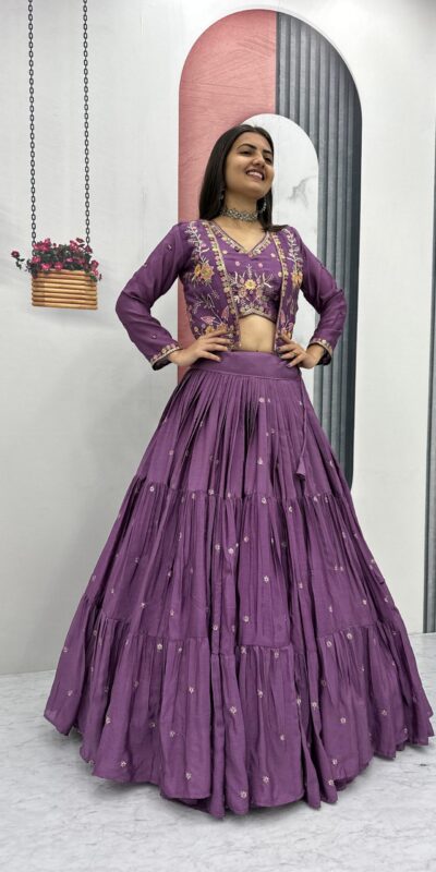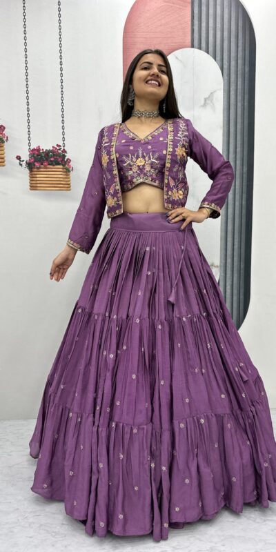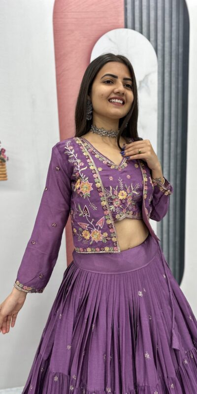 Lavender Chinon Thread Embroidery Lehenga Choli
