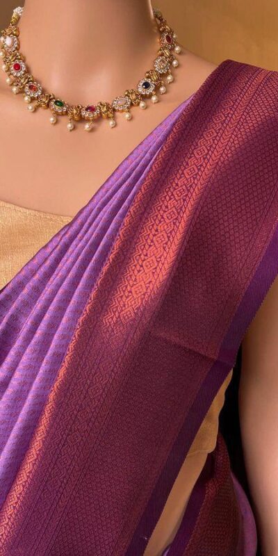 Lavender Lichi Silk Jacquard Border Lace Work Saree