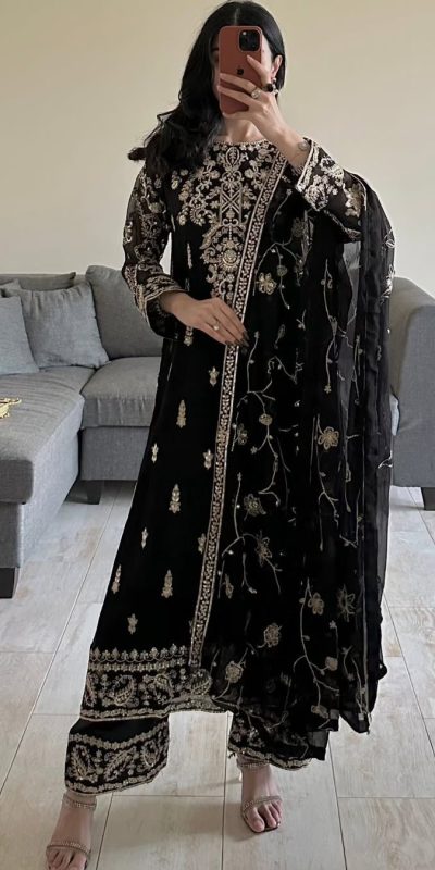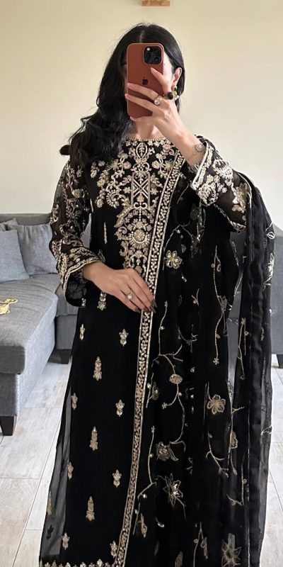Black Georgette Thread With Sequence Salwar Suit