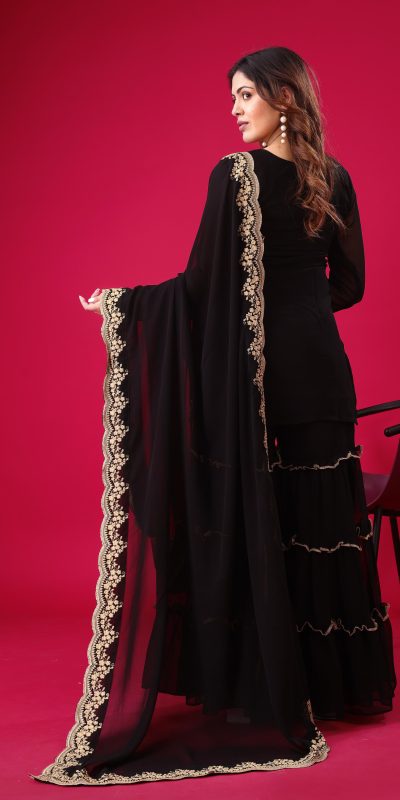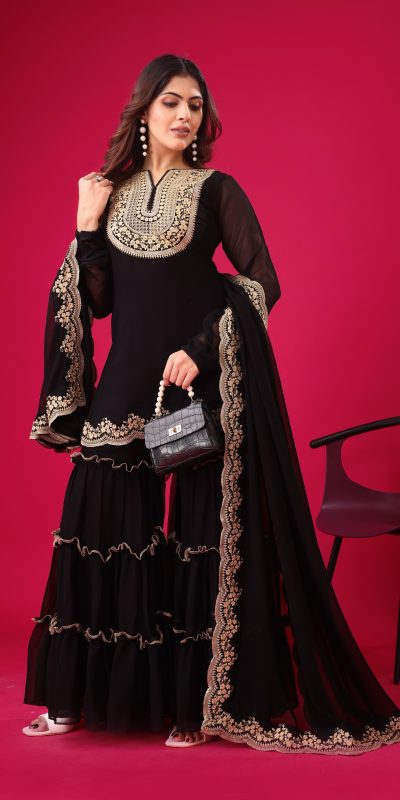 | Fabrics | Top Fabric :Blooming Faux Georgette With Heavy Embroidery 3mm Sequence Thread Work With Full Sleeve Top Inner : Heavy Micro Cotton Top Size : Free Size Fully Stitched Ready To Wear Top Length : 31-32 inchPalazzo Fabrics : Blooming Faux Georgette With Elastic Full stitched Palazzo inner : Heavy Micro Cotton Length: 40-41 Inch fully stitched Dupatta Fabric : Blooming Faux Georgette With Embroidery 3mm Sequence Work With Lace Border |