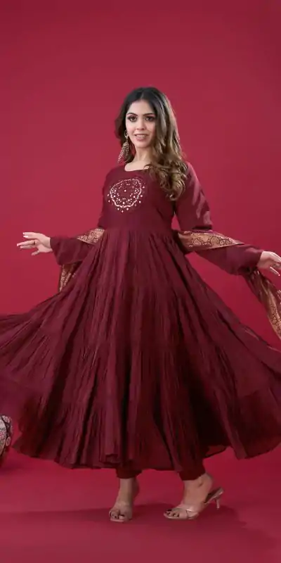 71 reviews for Maroon Roman Silk With Embroidery Sequence Work Anarkali Gown