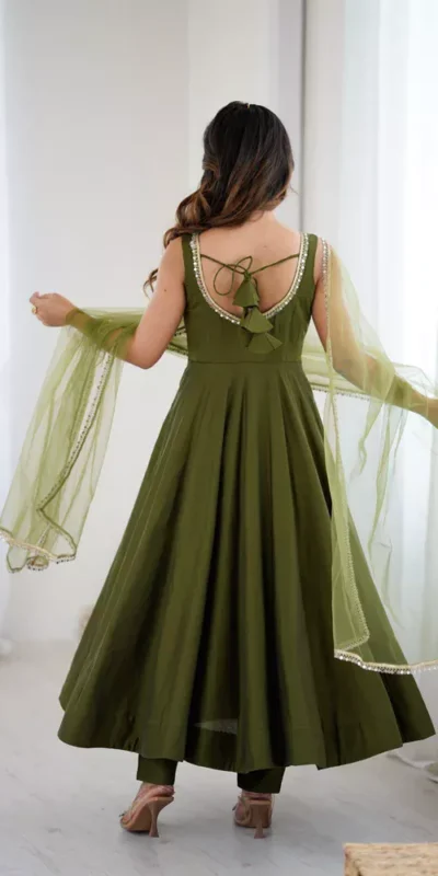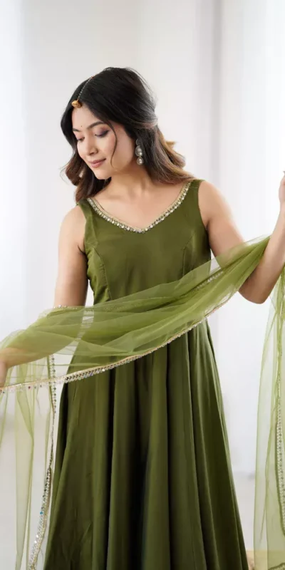 Mahendi Roman Silk Chanderi Mirror Work Gown