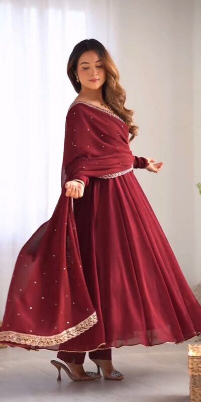 Maroon Faux Georgette Embroidery Lace Work Salwar Suit