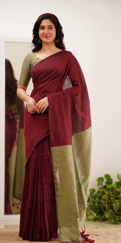 Maroon Soft Lilian Slab Rich Pallu Saree