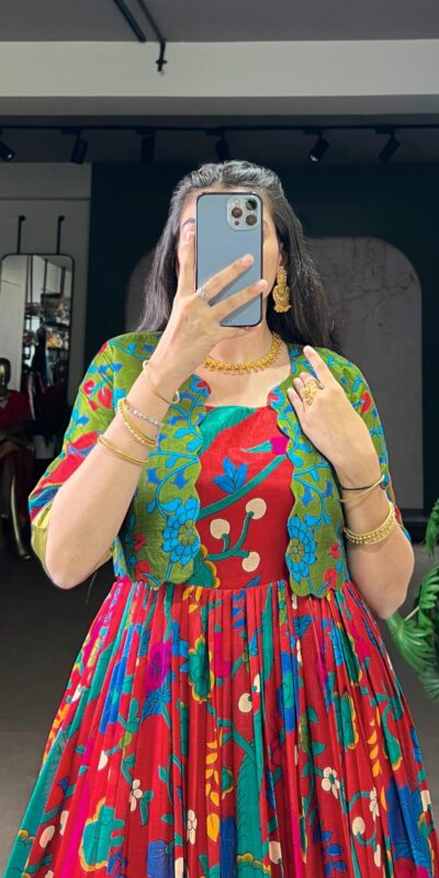 Gown Work : Kalamkari Print With Weaving Work