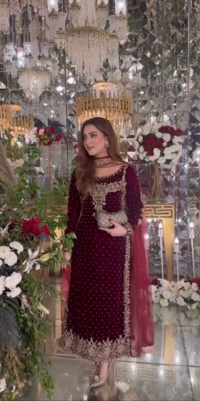 Maroon Viscose Velvet Lace Embroidery Work Salwar Suit