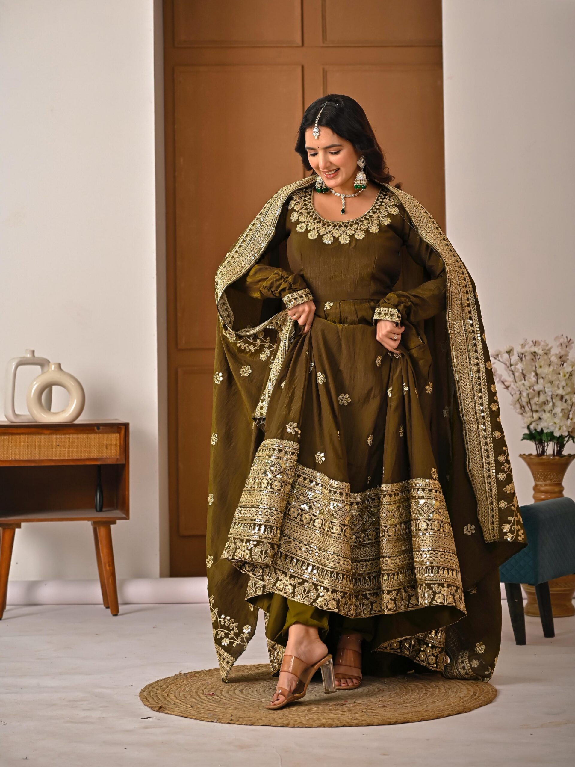 ND 5055 Mehandi NC Vichitra Silk Salwar Suit with Embroidery Work. Special Price ₹3149. Delivery 4-6 Working Days. Shop now. | Jump Suits, Salwar suit, Casual Suits, Creative suits, Designer Suits, Palazzo Suits, Party Wear Suits, Patiala Suits, Straight Suits