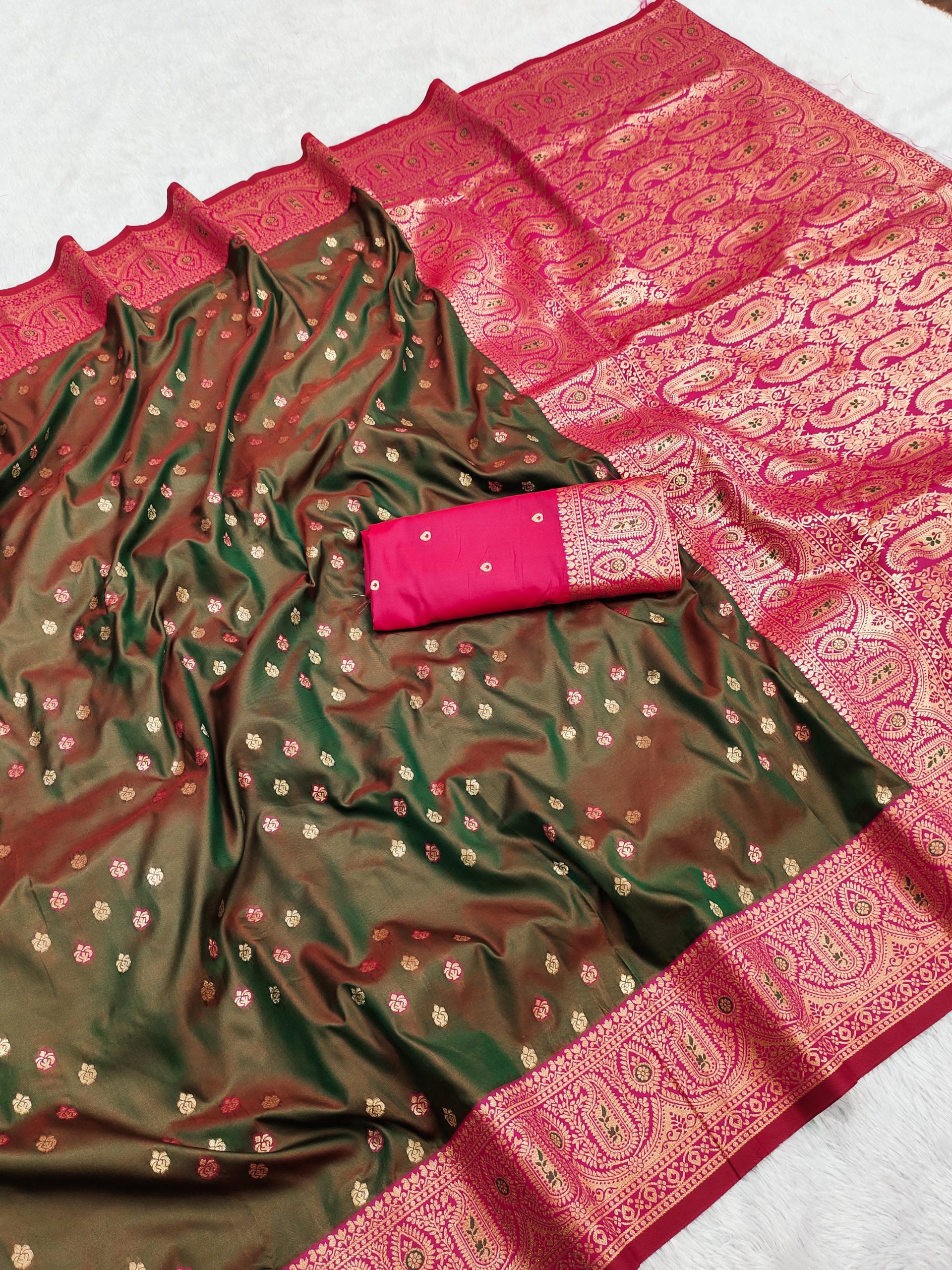 Mehendi Rich Banarasi Silk Zari Lace Work Saree