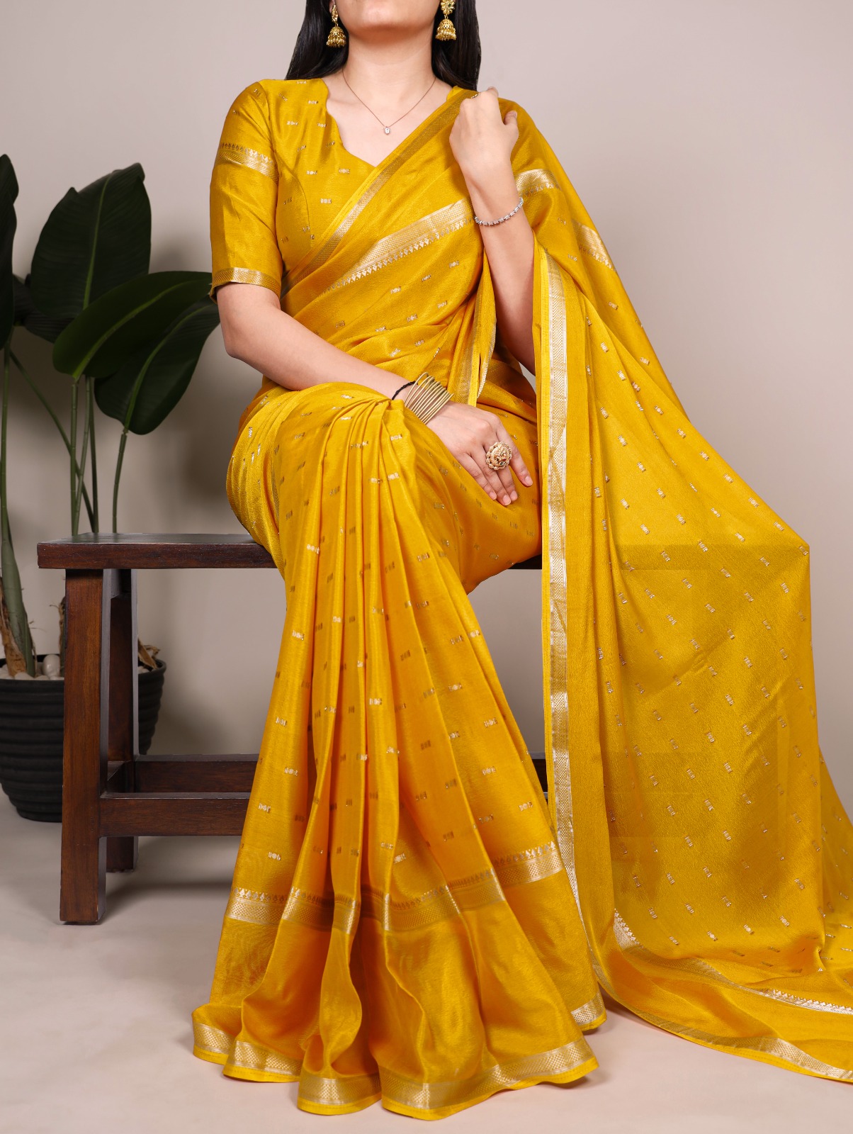 Gorgeous drape and luxurious feel. It’s my new favorite saree. The easy normal wash care makes it perfect for regular use.